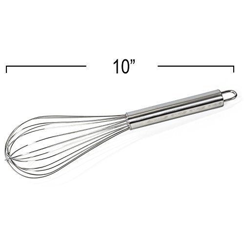 - Stainless steel bowl measurements; deep bowl 4.75 quarts, colander 3 quarts, whisk measures 10 inches long.
