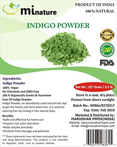 mi nature Indigo Powder -INDIGOFERA TINCTORIA ,(100% NATURAL , ORGANICALLY GROWN ) 1/2 LB (227 ...