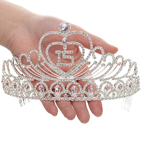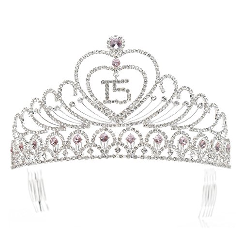 Every girl deserves to be the protagonist on her adult ceremony. This stunning rhinestone crown which is "15" lettered in candy pink crystals will make your dream come true