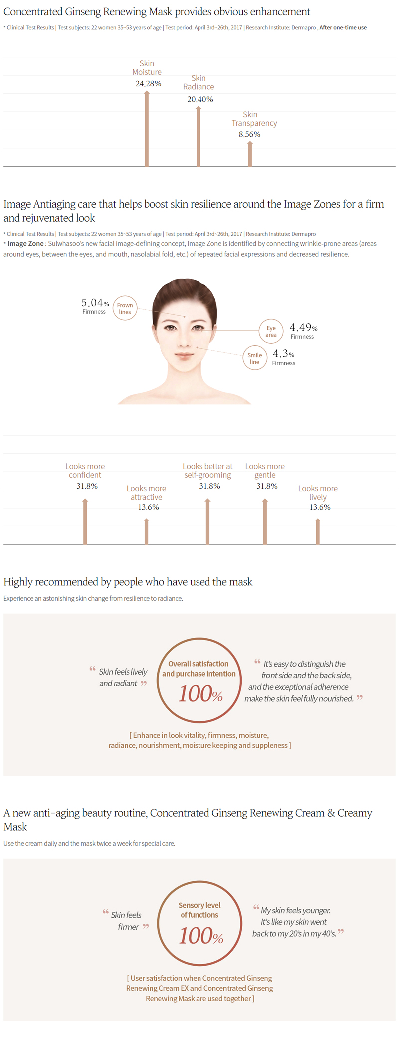| Innovative mask infused with Ginseng vitality The anti-aging creamy sheet mask presents a more firm and youthful look by delivering the core components of Concentrated Ginseng Renewing Cream EX through the innovative Double Wrapping Sheet™. Powerful anti-aging complex of Ginseng Rich in powerful ginseng components of Concentrated Ginseng Renewing Cream EX, the Concentrated Ginseng Renewing Creamy Mask creates a firm, glowing skin by enhancing skin moisture, radiance, resilience and translucency. Innovative dual-layer Double Wrapping Sheet™ The delicate cover of the outer sheet together with the exceptional adherence of the fine inner sheet provides deep nourishment and absorption to the skin, without leaving any residue on your hands. A light, creamy mask for moisturizing and nourishing care The dense yet smooth creamy texture helps the skin feel moisturized with a light finish, and provides ease of use by not dripping. |