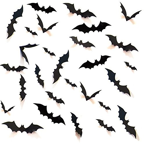 3D Design Bats - Scary 3D bats all over the wall or window. Comes with easy to apply style. Easy to apply to walls, doors, glass and other hard surfaces.
