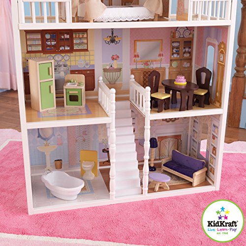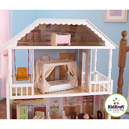 Studio : *KidKraft* Publisher : *KidKraft* Binding : Toy Product Description Give your child's dolls a home of their own with this mansion-style Savannah dollhouse. Perfect for 12-inch or smaller fashion dolls, this large dollhouse features multiple rooms and four levels, giving your child plenty of room to spread out dollies. Fourteen pieces of furniture are included, so interior design can begin right away. Wide windows and an open design give your kiddo easy access to this spacious toy, and its large size makes it perfect for sharing with a friend during play dates and sleepovers. Made from MDF and solid wood with fabric, this dollhouse provides lasting entertainment. 0