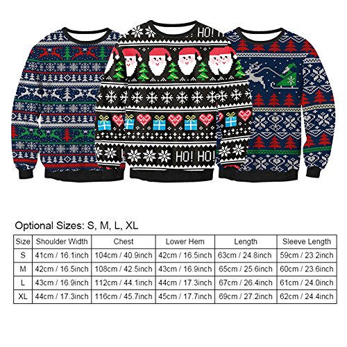 Specification: Item Type: Christmas Sweatshirt Materials: polyester spandex Color: multicolored Optional sizes: S, M, L, XL Package weight:345g Please allow 1-3cm error due to manual measurement. Thank you for your understanding.
