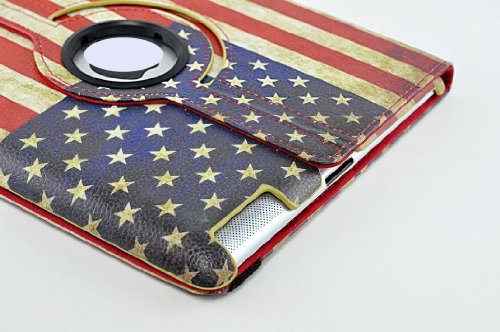 TCD for Apple iPad Air 2 ONLY [iPad 6] USA Vintage American Flag Patriotic Case 360 Rotation PU Leather Case Auto Wake/ Sleep Feature Multi Purpose Protection & Kickstand