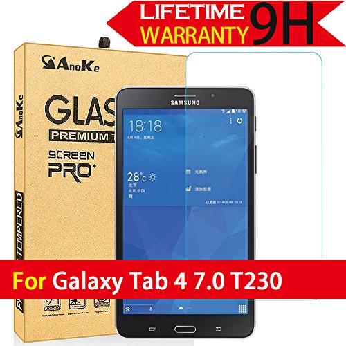 Galaxy Tab 4 7.0 Glass Screen Protector, (T230 2014 Not Fit T231) AnoKe [Lifetime Warranty](0.3mm 9H) Tempered Film Sheild For 7.0 T230 Glass