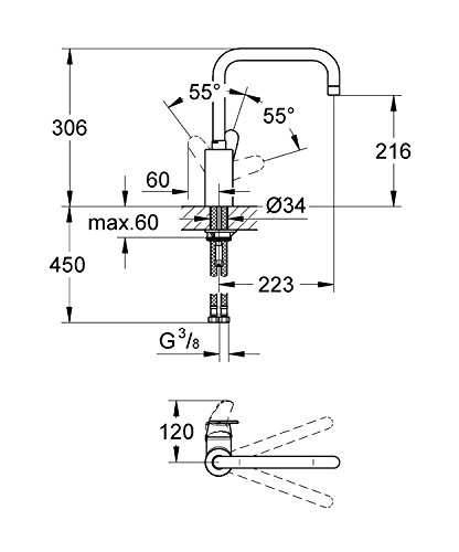 -. Title : GROHE Eurodisc Cosmopolitan Küchenarmatur, Schwenkbereich 0° / 150° / 360°, hoher Auslauf 32259002