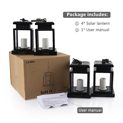 LED Solar Mission Lantern, LVJING 4 Pack Vintage Hanging Umbrella Lantern, Flameless Candle Light, Portable Clamp Lamp for Outdoor Garden Yard Lawn Patio Tent Pavilion Camping, Waterproof, Black