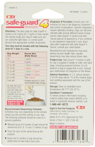 Safe Guard treats against Tapeworms, Roundworms, Hookworms, and Whipworms
