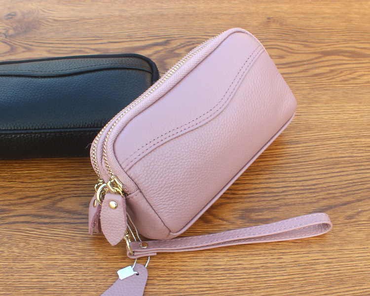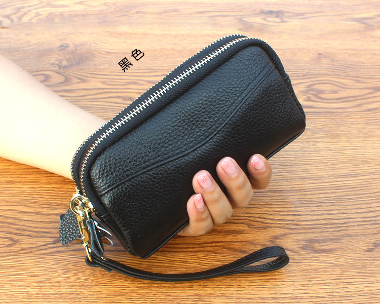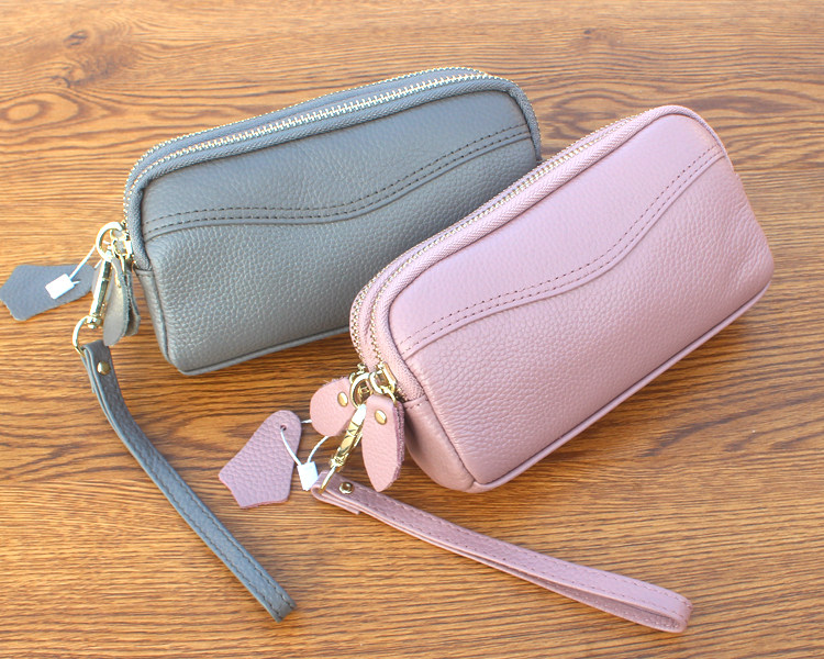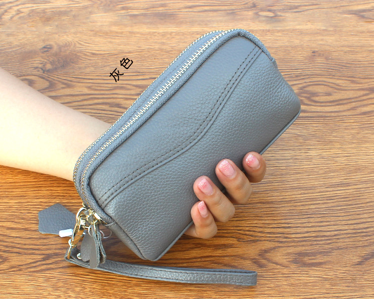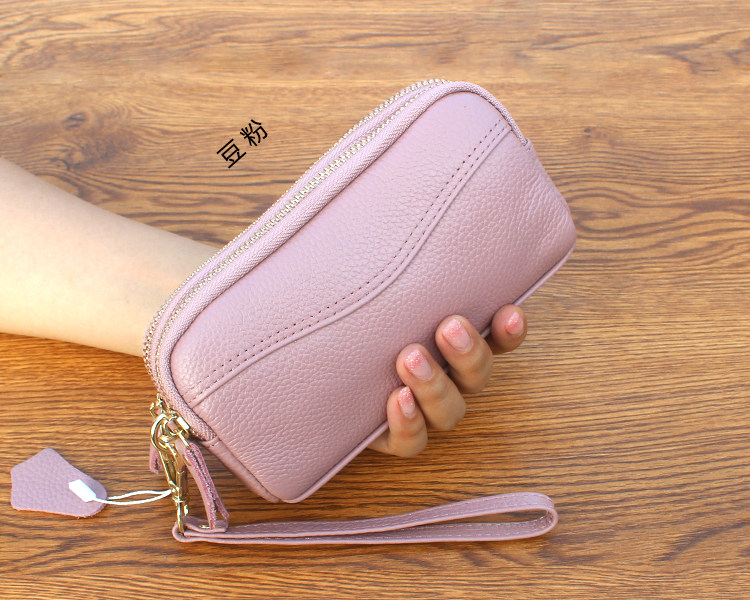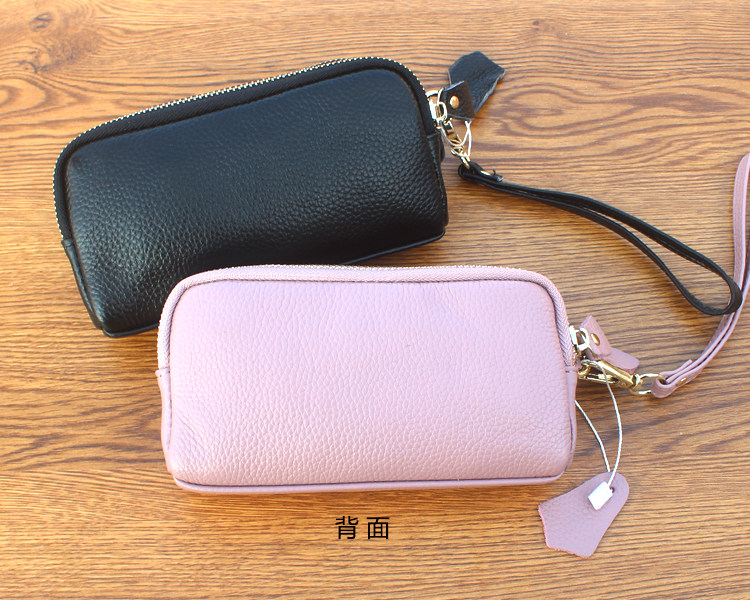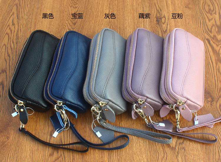 新款头层牛皮双层拉链包 欧美时尚真皮手拿包女 小包零钱包