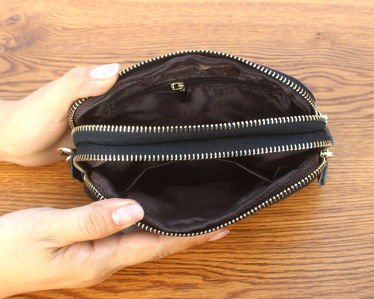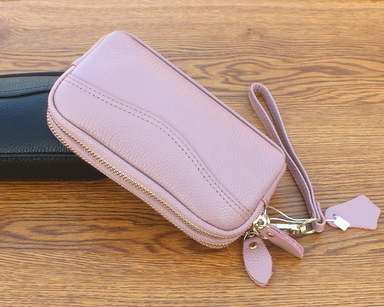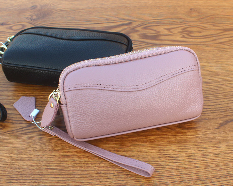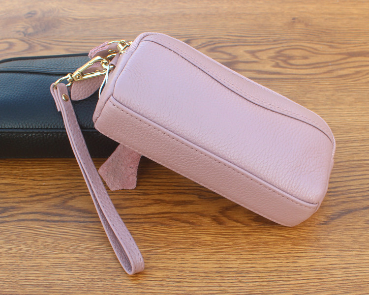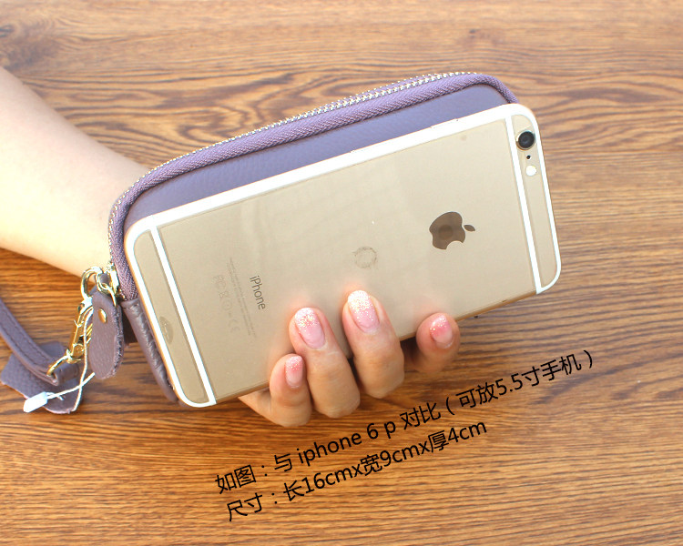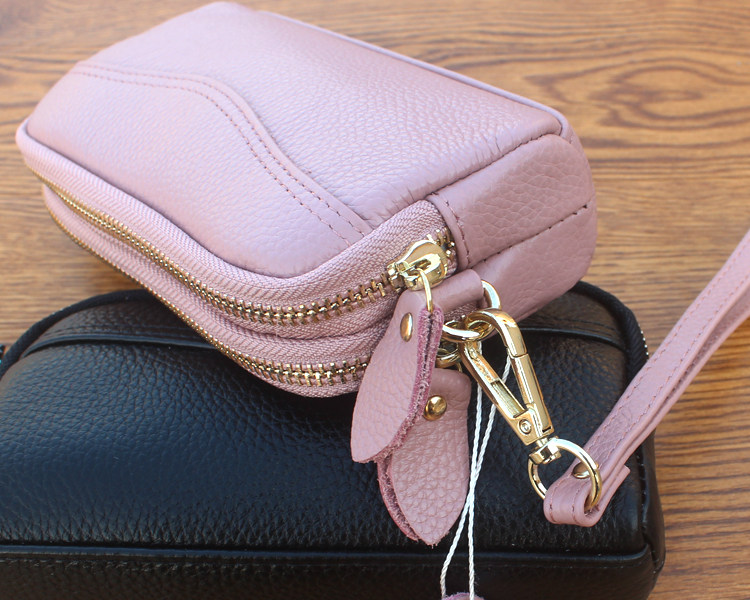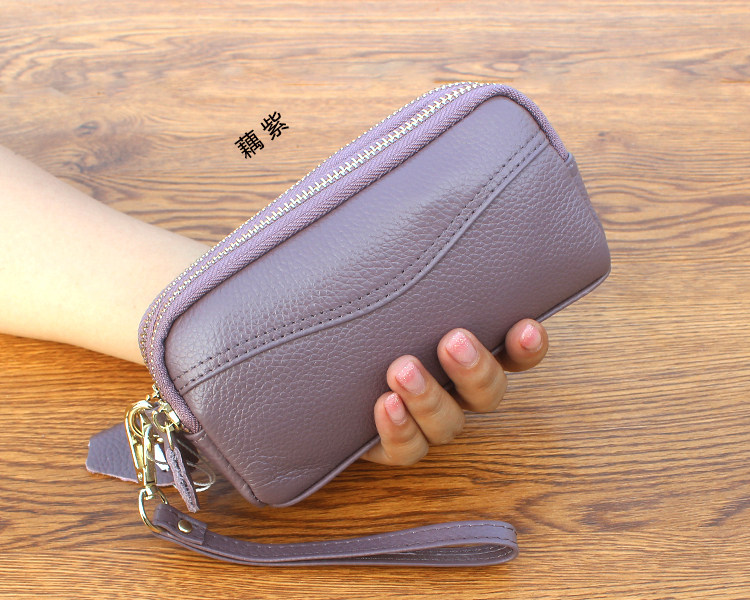 新款头层牛皮双层拉链包 欧美时尚真皮手拿包女 小包零钱包