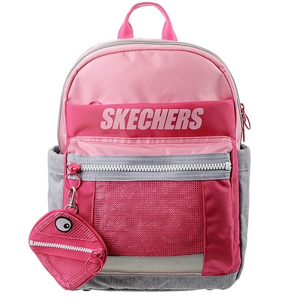 - ?백팩 신주머니 1 SET로 구성-? 전면부 메쉬 포켓을 구성 하므로써 디자인 포인트를 더 함-? 어깨끈에 Chest belt 가 부착되어 있어 흘러내림 방지 -> 활동적인 아이들에게도 편안함 제공- ?메쉬소재의 동전 지갑이 재미요소를 더함 -> 아동의 시선에 중점을 둔 Selling Point-? 신주머니 뒷면에 네임택 부착 내지 포함- ?사이드 Open Pocket 이 구성되어 있어 물통 등 수납 가능