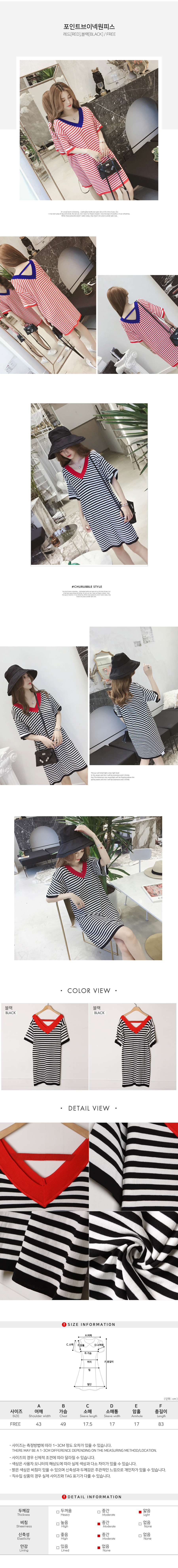 스트라이프 무늬가 세련된 느낌을 주면서 브이넥 라인으로 페미닌한 연출을 해주어요