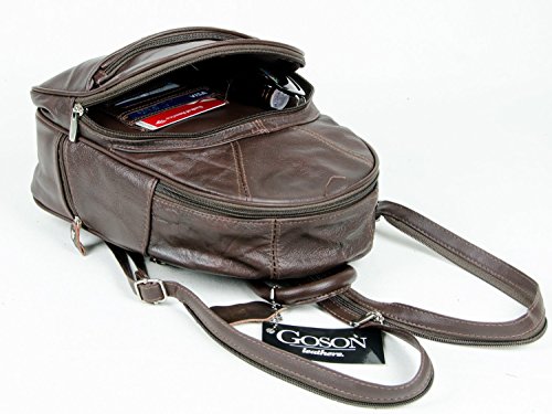 -. Brand : Goson -. ClothingSize : Medium -. Department : womens -. Feature : Genuine Leather Mini Backpack With Sling & Side Cell Phone Pocket Handbag/Purse With Side Cell Phone Holder ~ Black In Color / Zip Around Top With A Roomy Interior / 2 Exterior Zip Front Pockets & Rear Zip Pockets / Sling Back Strap For Easy Carry Along / Measurements: 9"W x 10"H x 4"D ~ Adjustable Sling Back Strap -. ProductGroup : Apparel -. ProductTypeName : LAGE -. Size : Medium -. Title : Goson Genuine Leather Mini Backpack Handbag/Purse With Sling & Side Cell Phone Pocket