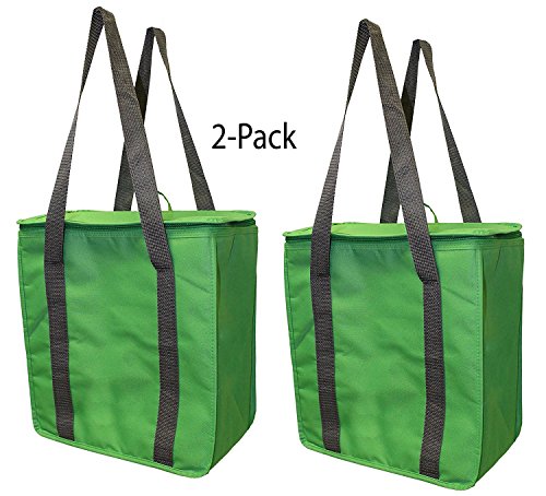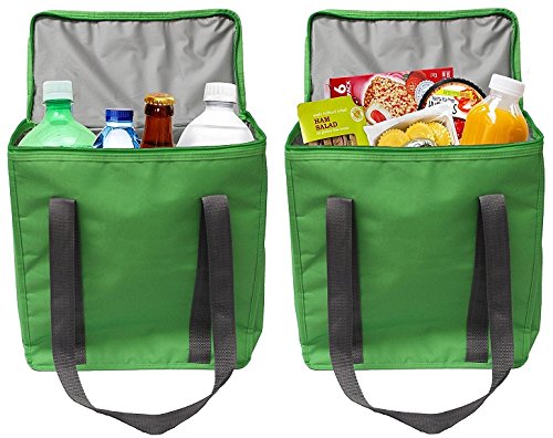Earthwise Large Heavy Duty Nylon Insulated Thermal Shopping Cooler Bag Zippered Lid Top Grocery Bag Lunch (2 Pack)