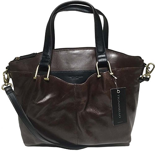 -. Brand : Tignanello -. Color : Brown/Black -. Department : womens -. EAN : 0711372741964 -. Feature : Top zip entry and removable shoulder strap / Genuine Leather With Man Made Trim / Front and back compartments with strong magnetic snap entry / Front and back slip pockets / Inner zip pocket, 2 inner slip pockets -. ProductGroup : Shoes -. ProductTypeName : HANDBAG -. Title : Tignanello Classic Equestrian Satchel, Brown/Black, 68633379 -. UPC : 711372741964