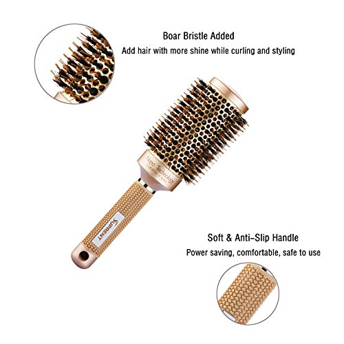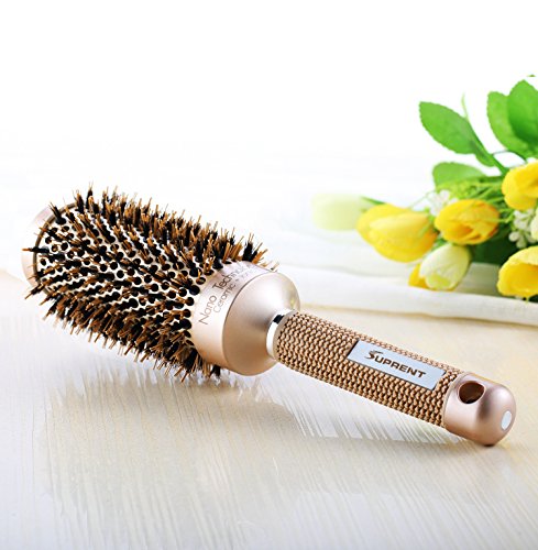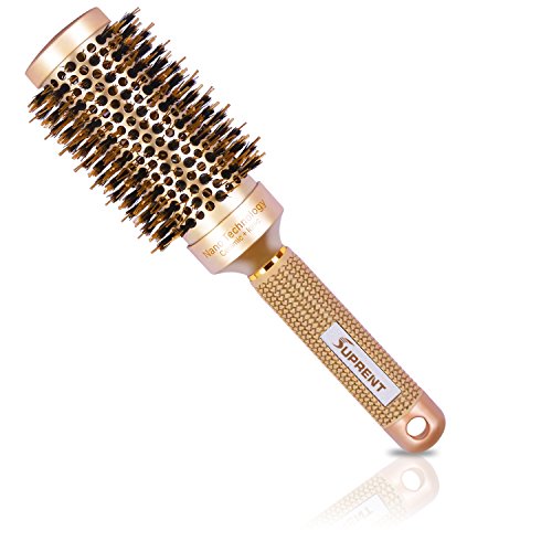 SUPRENT Nano Thermal Ceramic & Ionic Round Barrel Hair Brush with Boar Bristle, 1.8 inch, for Hair Drying, Styling, Curling, Adding Hair Volume and Shine, Gold...