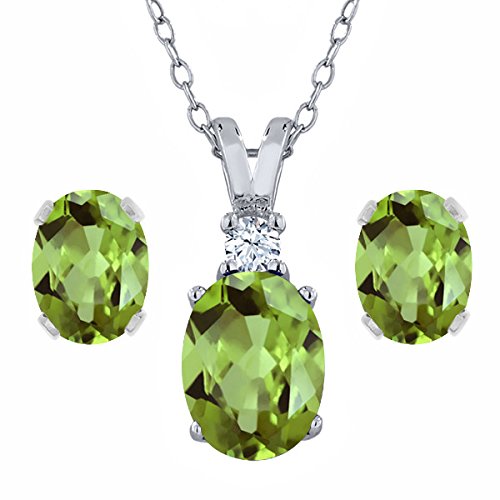 -. Binding : Jewelry -. Brand : Gem Stone King -. Color : Green and White -. Department : womens -. Feature : This item is proudly custom made in the USA / 100% Satisfaction Guaranteed / Gemstones may have been treated to improve their appearance or durability and may require special care. -. Model : MGZ-0291-OV-PE-GR-PE-GR-CZ-W-SS -. NumberOfItems : 1 -. PackageQuantity : 1 -. ProductGroup : Jewelry -. ProductTypeName : FINENECKLACEBRACELETANKLET -. Title : 2.98 Ct Oval Green Peridot 925 Sterling Silver Pendant Earrings Set