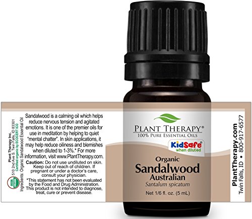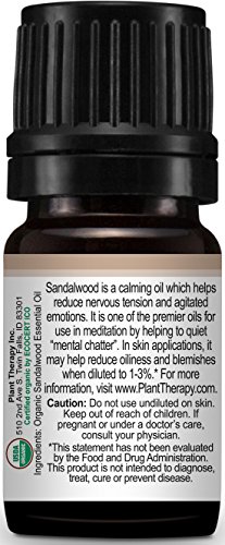 Plant Therapy USDA Certified Organic Sandalwood Essential Oil. 100% Pure, Undiluted, Therapeutic Grade. 5 ml (1/6 oz).