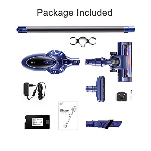 WP536 Cordless Stick Vacuum Cleaner 2 in 1 Flat Nozzle Disassembled to many brushs, Rotate 120 degree horizontally, and 180 degree in use. Dealing with corners and crevice for your ground, sofa,Wall, curtain, bed and car.
