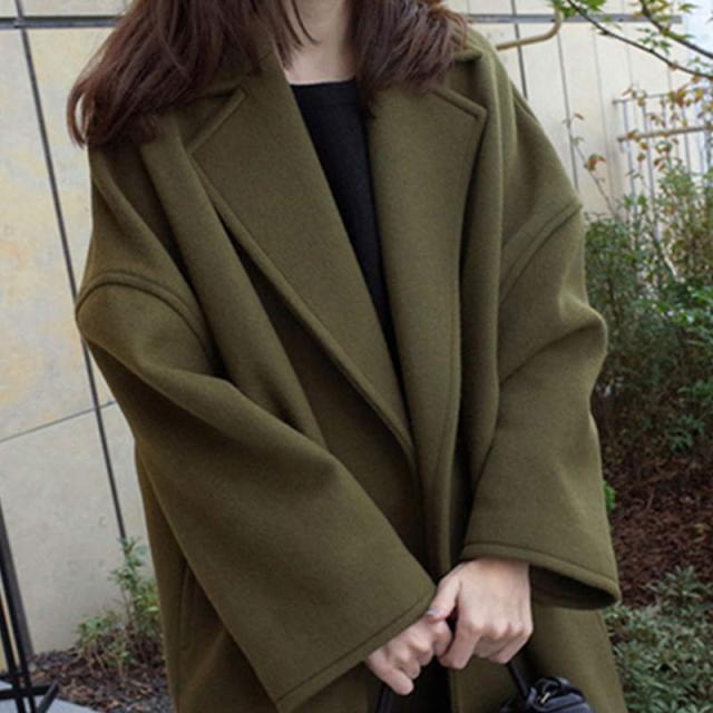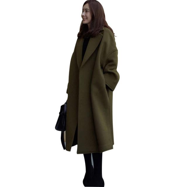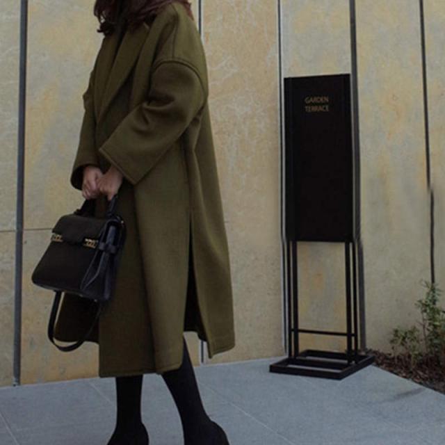 トレンド シンプル ロング丈 ガウンコート ゆったり ビッグサイズ 秋冬 上品 XS S M L XL 2XL