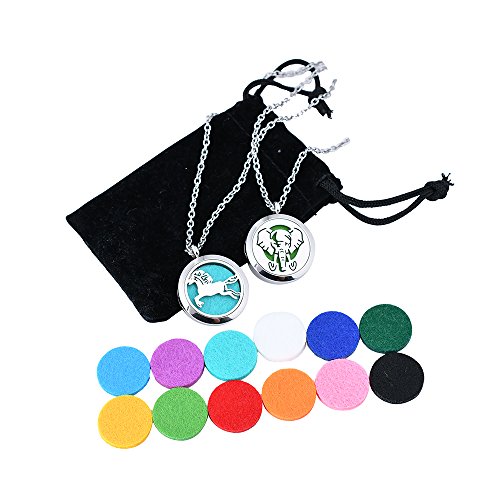 zxl 2 PCS Aromatherapy Essential Oil Diffuser Necklace Stainless Steel Pendant Locket Jewelry 23.6 Inches Adjustable Chain and 12Washable Refill Pads