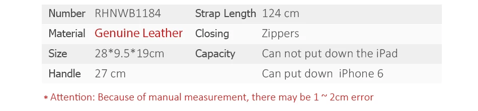 Main Material:Genuine Leather