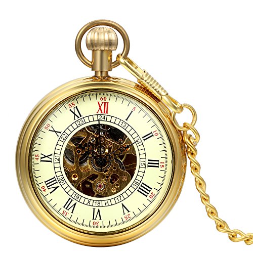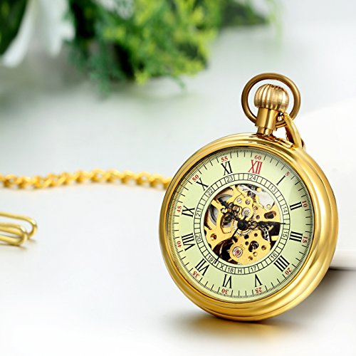 -. Binding : Watch -. Brand : Jewelrywe -. Department : Unisex-adult -. EAN : 6954847760877 -. Feature : Gold tone metal finish,hand wind mechanical movement / Skeleton dial with roman numerals / Open face case with a matching curb chain / Chain Length:13.8"(35cm),Case Diameter:1.9"(4.9cm),Case Thickness0.6"(1.6cm) / Including one blue velvet bag P.R.Inted "JewelryWe" on it. -. Label : JewelryWe -. Manufacturer : JewelryWe -. Model : JWWA480061 -. MPN : JWWA480061 -. PartNumber : JWWA480061 -. ProductGroup : Watch -. ProductTypeName : WATCH -. Publisher : JewelryWe -. Studio : JewelryWe -. Title : JewelryWe Men's Open Face Gold Tone Skeleton Hand Wind Mechanical Pocket Watch Roman Numbers 13.8 Inch Chain