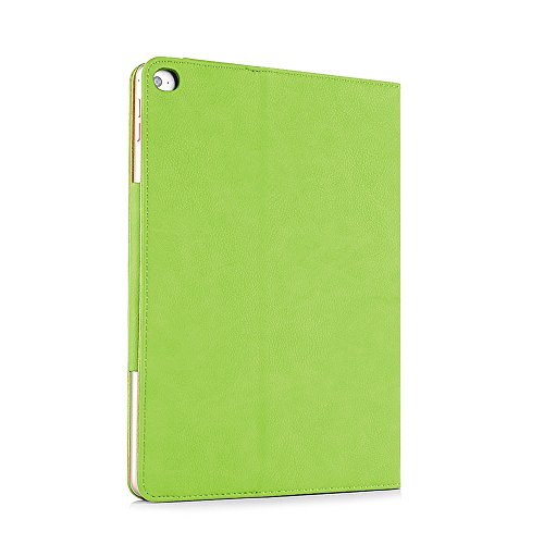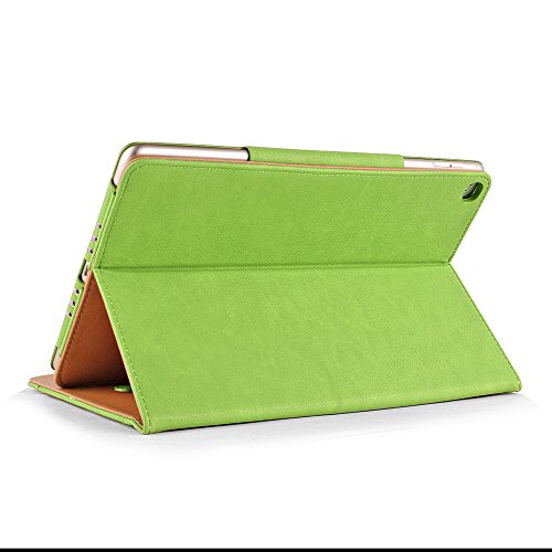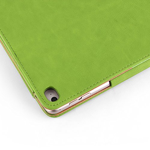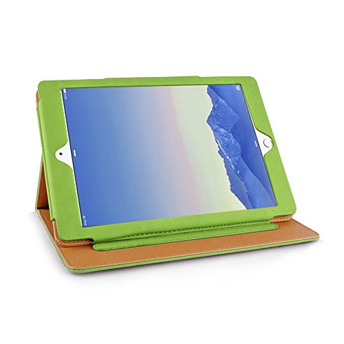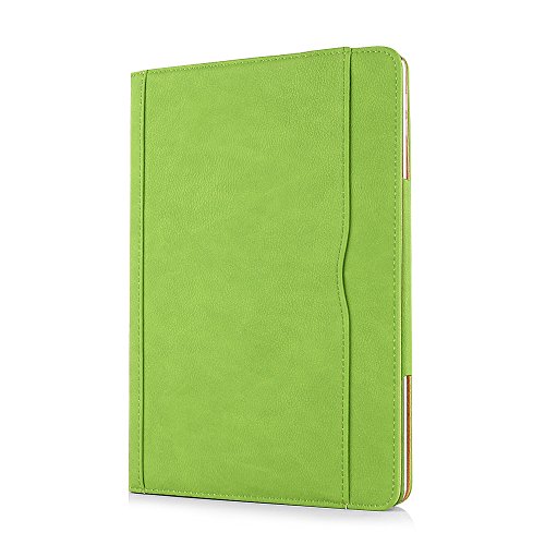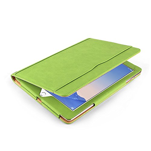 iPad Air 2 Case, Apple iPad Air 2 Premium Tan Leather Wallet Smart Flip Case Cover with Magnetic Sleep Wake Sensor (Green)