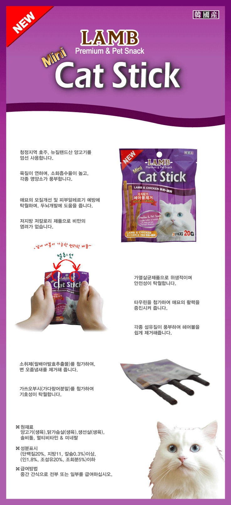 Cat Stick 3p Lamb Chicken 5 Cat Snack Cat Food Jerky Soft Nutritional Mini
