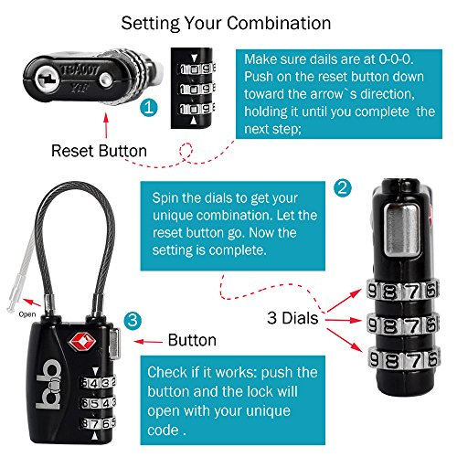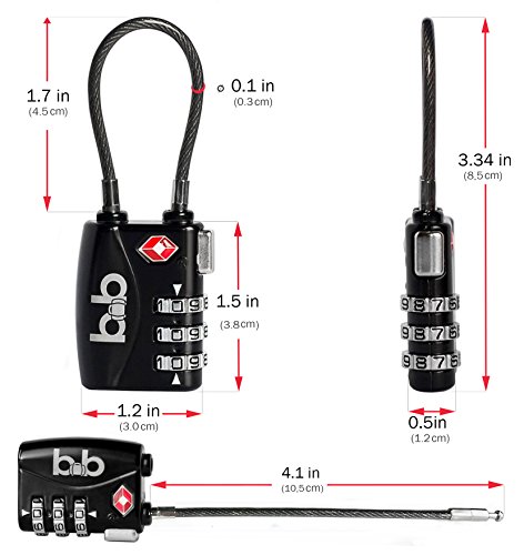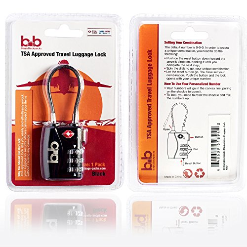 -. Brand : BB Bags&Backpacks -. Department : unisex-adult (lage only) -. Feature : 100% TSA APPROVED LAGE LOCKS - efficient system that guarantees the protection of your lage from damage during various inspections / TRAVEL LOCK CAN WITHSTAND UP TO 600 POUNDS - his lock has a flexible cable can cope with problems where the lock bags without cable can't cope / 3 DIAL COMBINATION LOCK - is very easy to use and will not cause you any trouble; The backpack lock has a dial tumbler, the numbers on which initially set for 0-0-0; You will easily be able to enter a new individual 3 dial / RELIABLE PROTECTION AGAINST OPENING - the main advantage of our BB lage lock is the inability to open it using traditional ways. The combination lage locks are considered to be one of the most reliable TSA padlocks / SMALL LOCK AND LIGHTWEIGHT LOCK cable attached to various sizes and types of zippers, as well as to zippers which do not have any lock latches, without affecting the weight of the lage or baggage -. ProductGroup : Apparel -. ProductTypeName : LAGE -. Size : All Size -. Title : TSA Lock Combination Padlock - Suitcase Cable Lock TSA Lage Locks Special Alloy