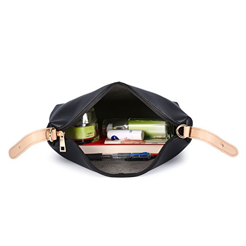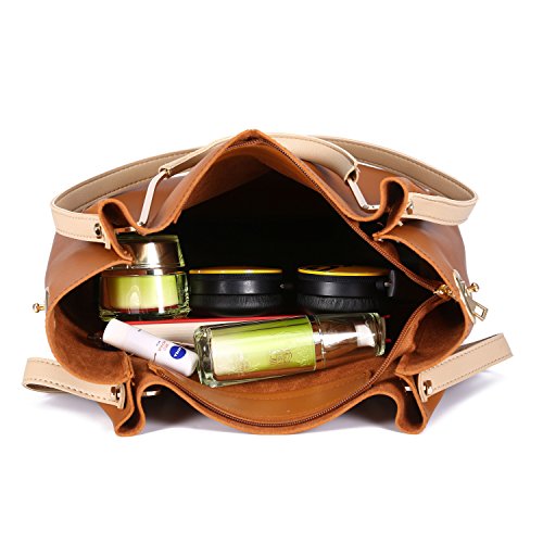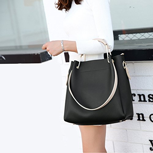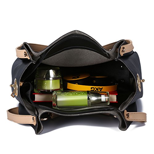 -. Feature : DIMENSIONS --- Large:12"W x 11.8"H x 5.5"D, Small:9.1"W x 8.3"H x 3.5"D. Height of Handle: 4.3". the weight is 2.46 lb. / SOFT & DURABLE : High quality PU Leather with silver color hardware; heavy duty zippers and fabric lining; adjustable strap to prevent slidding off your shoulder. Every stitching joints have been reinforced for durability. / WELL ORGANIZATION --- 1 Exterior Back Zipper Pocket,1 Interior Zipper Pocket and 2 Interior Open Pockets. Soft Leather Handle, Zip-pockets in both Interior and Back, Detachable Shoulder Strap and Top-zipper Closure / SPECIAL 3-WAY CARRYING --- Convertible versatile bag! You can carry it as a handbag,single shoulder bag,messenger bag as there is a long detachable shoulder strap. / LARGE CAPACITY --- This handbag can accomodate your books, small makeups, wallet, umbrella and so on. Elegant high-end design goes well with any outfit in any occasions.