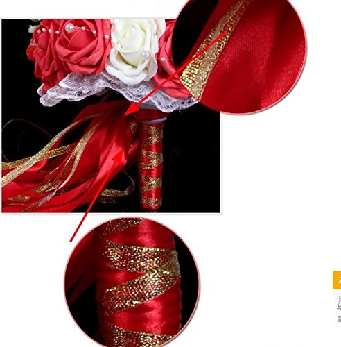 - Title : Hestian 10" Red and Ivory Roses with Pearls Chain , Beautiful Ribbon Bridal Wedding Bouquet Silk Rose Hand Tie (30pcs Roses)