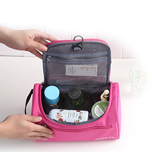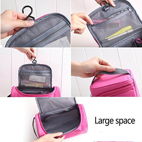 Multifunctional Portable Waterproof Hanging Wash Bag Toiletry Bag Travel Cosmetic Bag Organizer (Pink)