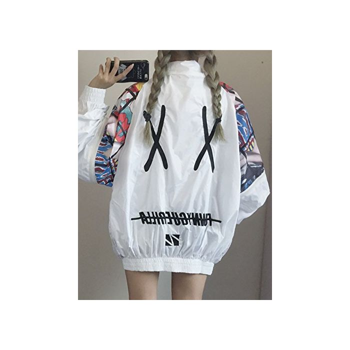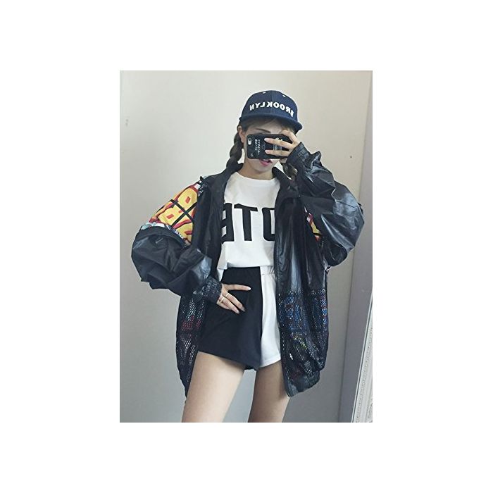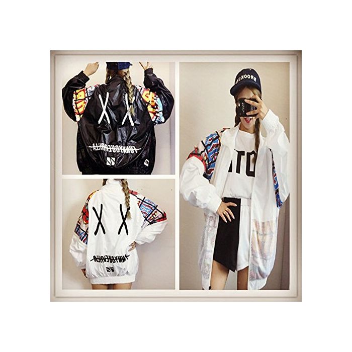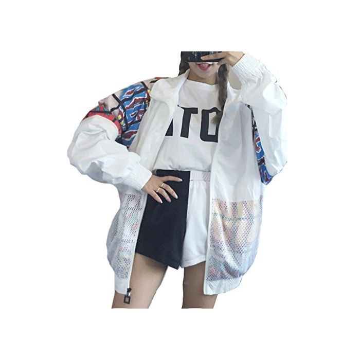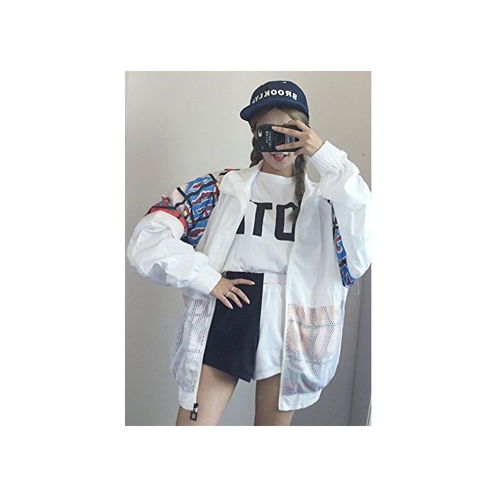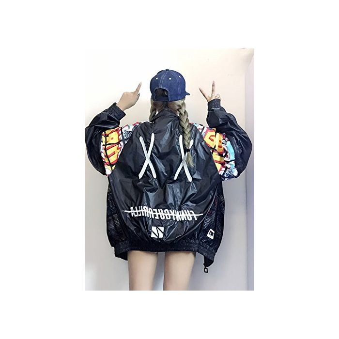 (《지치》)TiTi Fashion 레이디스 긴 소매 개성파 파커 스포츠 트레이너 박수 멋쟁이 긴 소매 자외선 차단제 귀여운 롱 B계 하라쥬쿠 눈(째) 서 크 사이즈 메쉬 블루존 춘