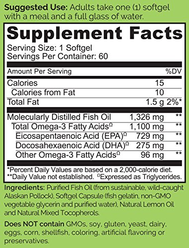 HIGH QUALITY - Sourced and purified in the United States from sustainable, wild-caught Alaskan Pollock, our fish oil supplement is guaranteed to be the highest quality on the market. We use advanced molecular distillation for exceptional purity and thoroughly test each batch to ensure the oil is free of Lead, Mercury, PCB's, Arsenic, and Cadmium. So, you can rest easy, knowing your body is getting the quality nutrition you deserve.