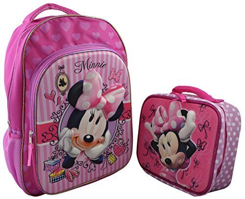 -. Title : Disney Minnie Mouse Girl's3D Pop out Large 15.5" Backpack with 3D Pop out Lunchbox