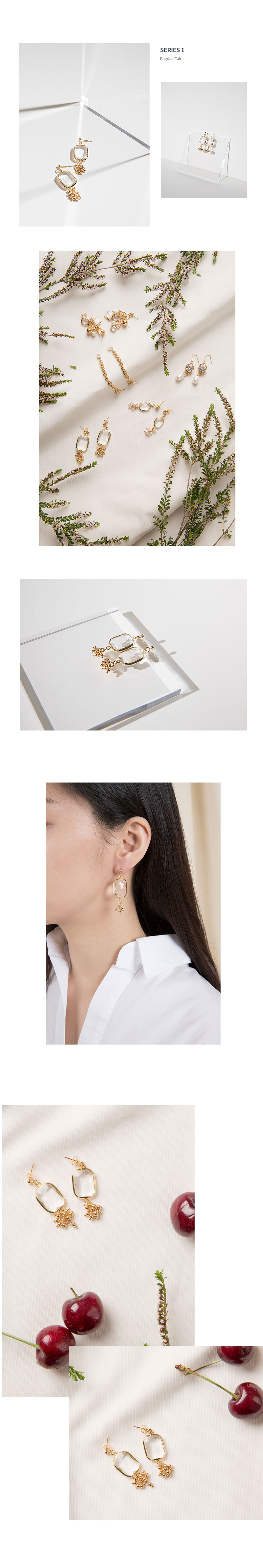 손님들에게 위로를 전하는 듯 햇던 비스킷처럼 반짝이는 스퀘어 크리스탈 팬던트로 구성된 귀걸이 입니다.
