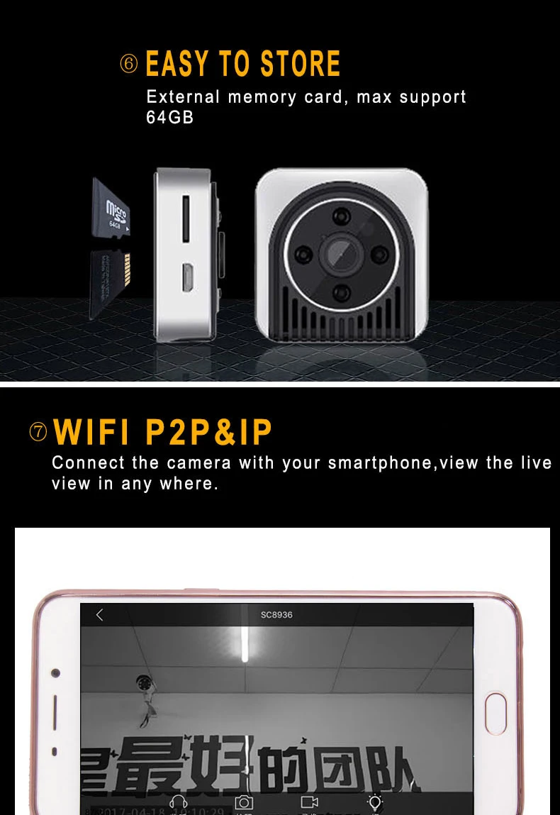 Feature:No light when recording and nigth vision