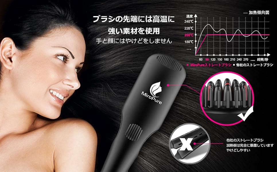 ★とても安全★ ブラシの外周、先端には高温に強い素材を使用。高温のブラシ部分を直接地肌に触れないように設計されています。