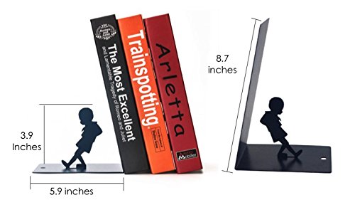 Product Description Non-SLIP DESIGN - There are four friction cotton on the bottom of the end to prevent slippage. The angle of inclination is 68 degree, which can hold the book from the largest extent HIGH-QUALITY MATERIAL - The bookend is crafted from powder-coated steel. ONE per PACKAGE: This David D dramatic bookend comes one to a package. The bookend is a stand-alone bookend. SILHOUETTED FIGURE - Books tilt on the bookend, appearing to fall on the silhouetted figure. SIZE: Each bookend measures 6.7 inches tall x 5.9 inches long. 0