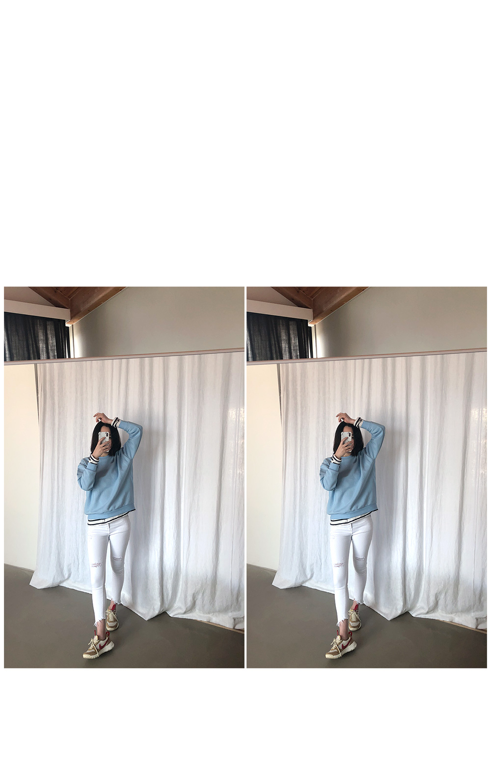 소매끝단,밑단 짱짱한 시보리처리로 핏감을 탄탄하게 잡아줘요