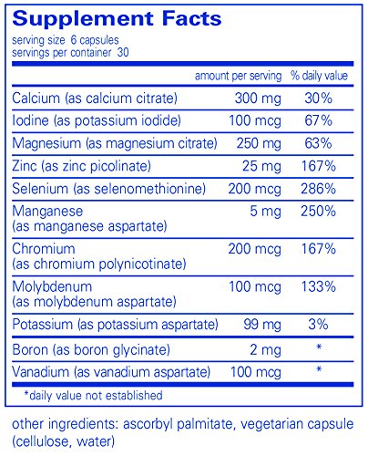 -. Binding : Health and Beauty -. Brand : Pure Encapsulations -. Label : Pure Encapsulations -. Manufacturer : Pure Encapsulations -. ProductGroup : Health and Beauty -. ProductTypeName : HEALTH_PERSONAL_CARE -. Publisher : Pure Encapsulations -. Studio : Pure Encapsulations -. Title : Mineral 650 w/o Cu&Fe 180c