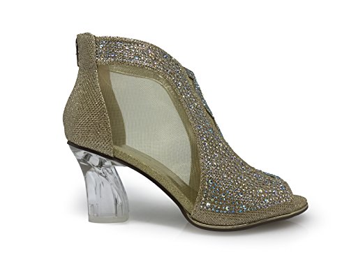 Product Description women's rhinestone glider with beautiful crystal style mid heel sandals, with rear zipper closure, gladiator booties style, great match for any dresses. 0