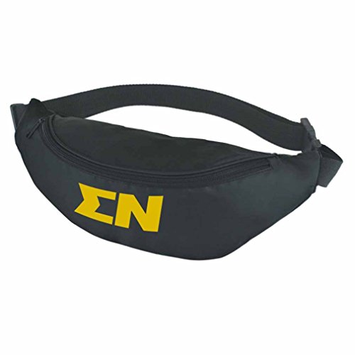 Sigma Nu Large Zippered Front Pocket Sorority Polyester Fanny Pack. Measures 14" W x 5 1/2" H. Main Zippered Compartment Adjustable Waist Strap 44" Maximum Belt Size