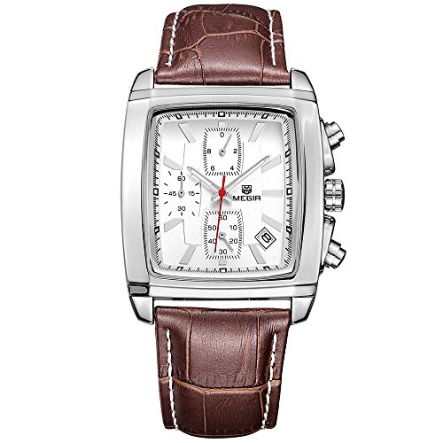 -. Title : Megir Mans Military Brown Leather Straps Chrongraph Quartz Watch Men's Sports Watches with Calendar
