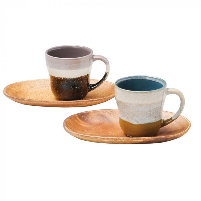 釉薬の織りなす自然の美しさを感じるマグ&トレーです。