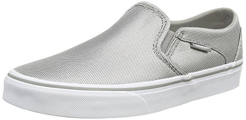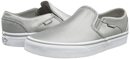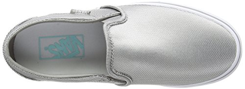 A metallic finish makes these women's Vans skate shoes stand out. In silver.
