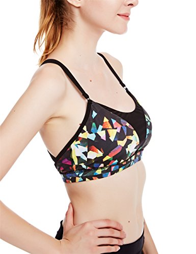 -. Feature : Made with lightweight,moisture-wicking power fabric,Mesh fabric lining help keep you cool and comfortable / Removable cup add shape and give coverage / Back straps let you twist with ease / Fabric is designed to contour perfectly to your body,giving you a streamlined look / Perfect activewear bra for yoga, exercise,fitness, running, any type of workout,or everyday use. icyzone Yoga bra combine fashion,function and performance