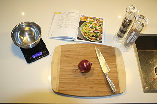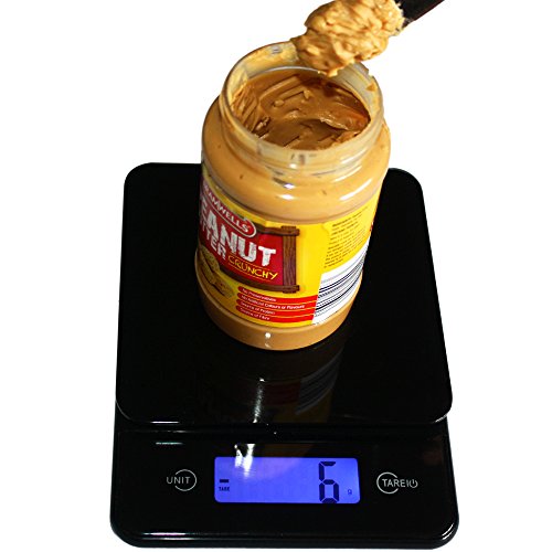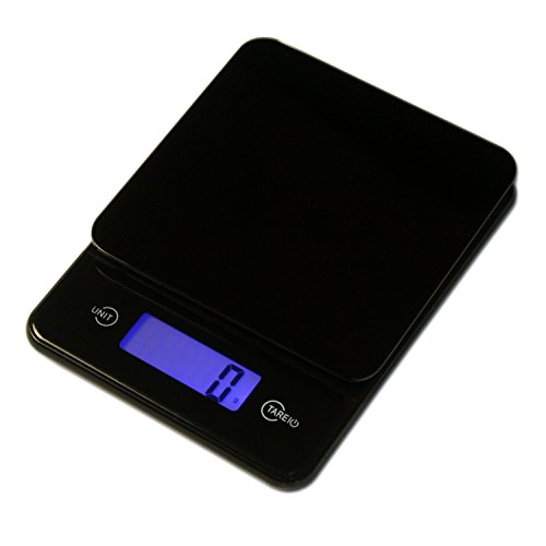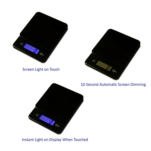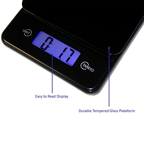 ACCURATE MEASUREMENTS - easy-to-use digital kitchen scale weighs up to 11 lbs(5kg). Precise 0.05 oz (1gram) measured increments. Raised tempered glass platform allows for easy cleaning and storage.