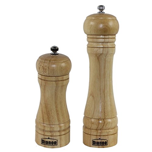 Dianoo High Quality Anti-fall Oak Wood Pepper Mill and Grinder, Wooden Grinding Ceramic Core Salt and Pepper Grinder, 2PCS (One is 8 inch, the other is 5 inch)